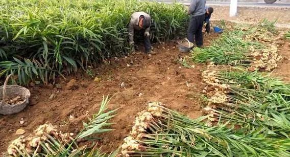 依据市场行情,可在生姜的旺长期收获种姜出售(也叫“扒老姜”)方法是:顺着播种方向扒开土层,露出种姜,左手按住姜苗茎部,右手轻提种姜,使之与植株分离。注意不能摇动姜苗,以防伤根早衰,取出种姜后要及时封沟。对弱小的姜苗不宜取种姜,以免人为造成早衰。